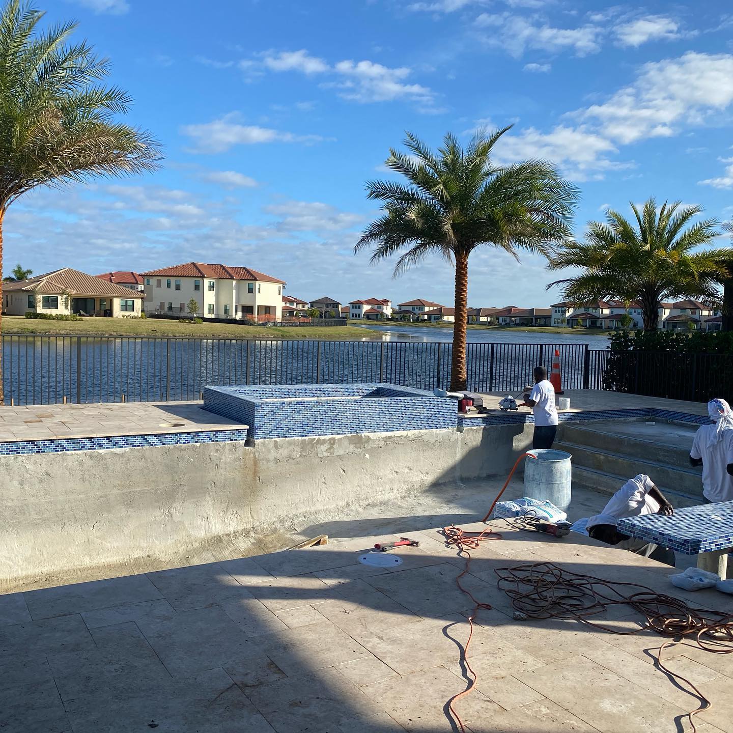 A popular South Florida material is the Gem finish, made by Florida Stucco. This is a mill prepared marcite alternative, blended with high quality colored quartz aggregates. Gem finishes result in a very strong and durable finish that is etch resistant, stain resistant, slip resistant, and non abrasive.